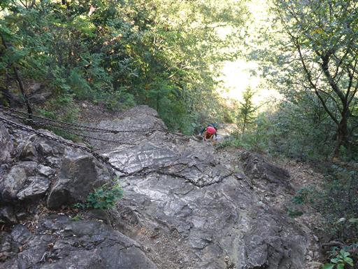 傾斜の緩い鎖場なので一番下までは見えないが、結構長い鎖場だ。