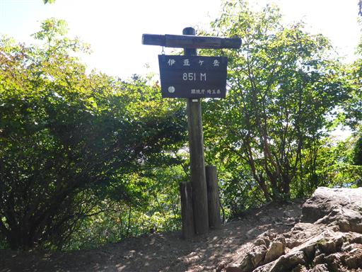 岩場から少し歩くと伊豆ヶ岳の山頂に到着する。標高851m。