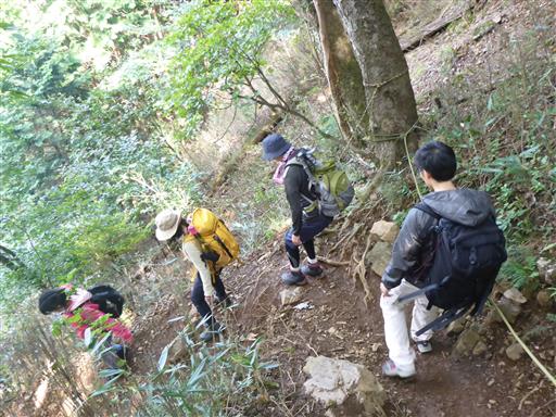 鎖場を登りきると、今度は木の根だらけの急登になる。