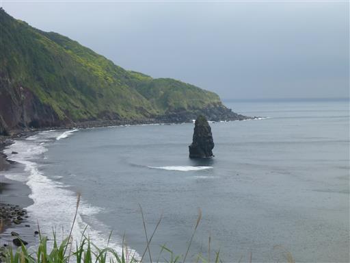 途中で筆島に立ち寄る。海の中に突き立つ30mの岩だ。