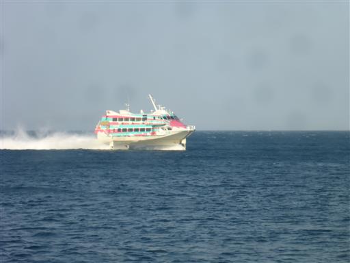 別のジェット船とすれ違う。船体はほとんど宙に浮いている。