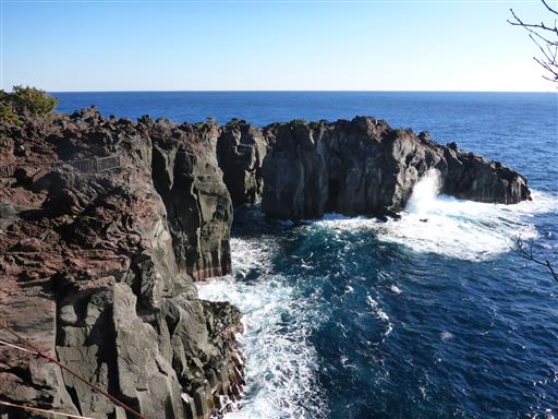 城ヶ崎海岸は近くの火山の溶岩が海に流れ出て形成された。