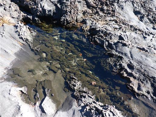 岩の上には所々に水たまりがある。