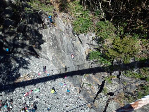 吊橋からは眼下にロッククライミングをしている人が良く見える。