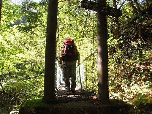 小さな吊橋を通って沢を渡る。