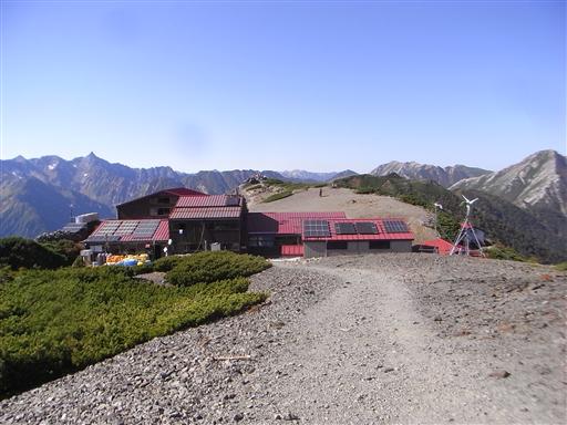 そして最高の展望が広がる稜線の真ん中に蝶ヶ岳ヒュッテが建てられている。