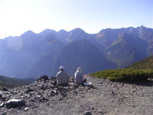 山頂からは真正面に穂高岳が望める。
