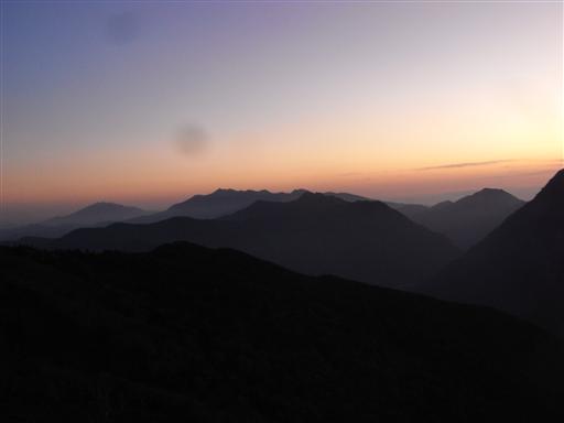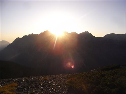 穂高岳の後ろに陽が沈んでいく。