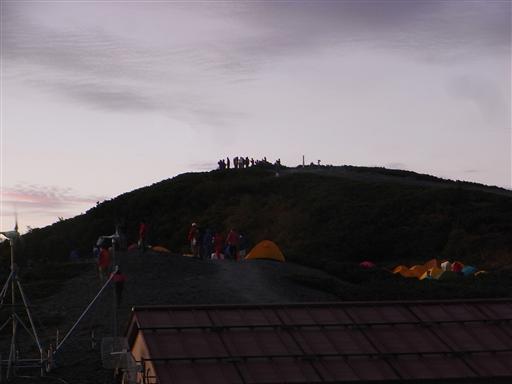 山頂は日の出を拝む人々で賑わっている。