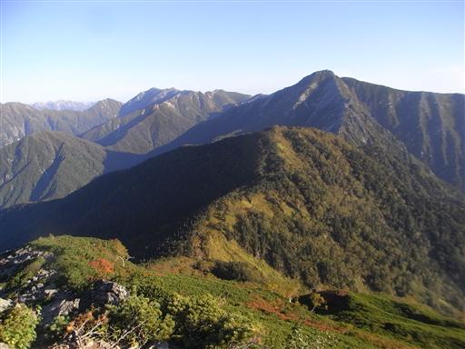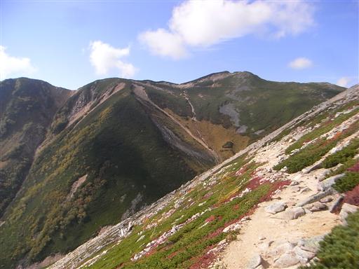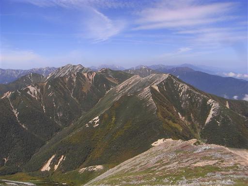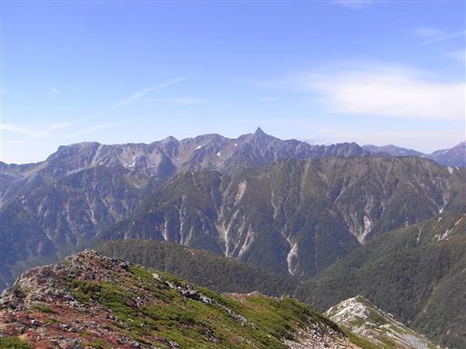 常念山脈の最高峰だが、目立たないピークのため主役は常念岳に譲っている。