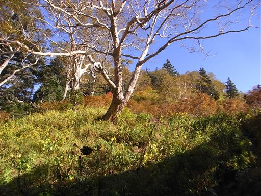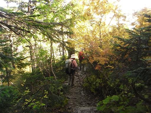 標高2500mを越える稜線には、すでに紅葉の始まっている木もある。