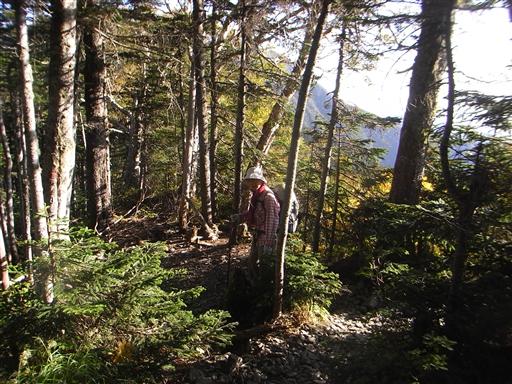 標高を下げていくと、樹林帯に入っていく。