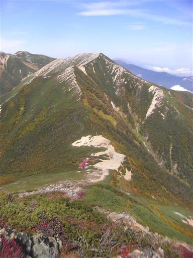 ここから常念岳へは大きく下降してから登り返すことになる。