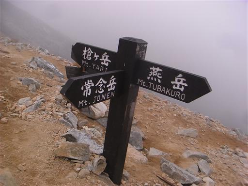 しばらく歩くと槍ヶ岳への分岐点に到着する。