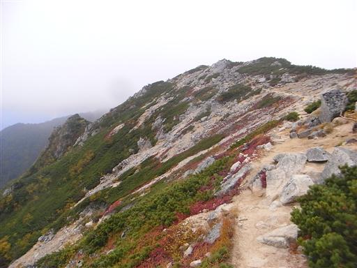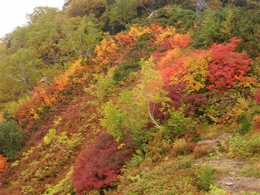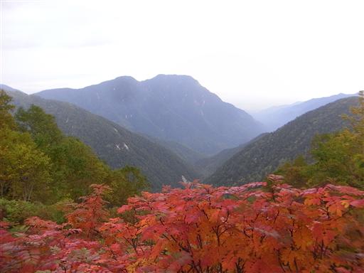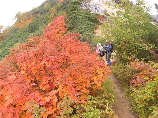 大して標高の変わらない蝶ヶ岳近辺はさほど赤くなっていなかったのに、