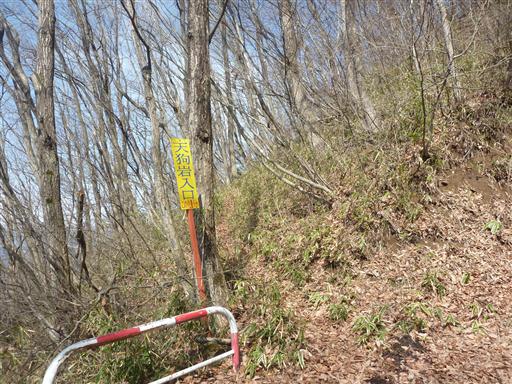 天狗岩入口の標識。「この先1分」と書かれているので行ってみることにする。