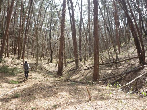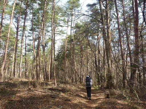 途中から植生が変わって松林はなくなる。色々な木がごちゃ混ぜに生えている。
