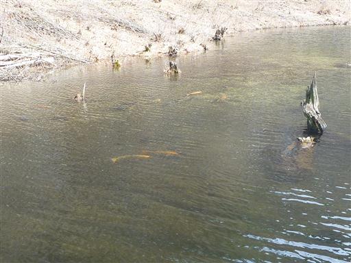 沼にはコイが泳いでいる。