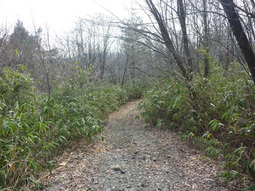 最後は笹に覆われた林道を下って行く。
