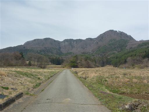 麓から上州三峰山を望む。山頂は奥にあってここからは見えない。