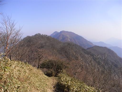振り返ると背後に八紘嶺が見える。標高1900mを越える高峰だ。