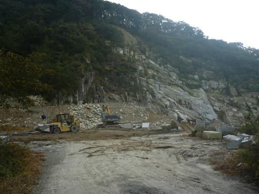 この山は御影石がとれるらしく、西側の斜面にはあちらこちらに採石場がある。