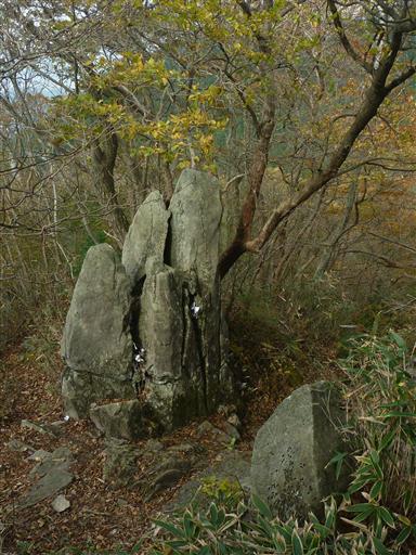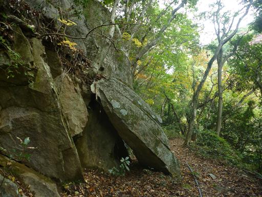 岩がちな地形は続く。大きな岩の隙間を登っていく。