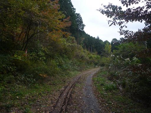 道は途中から林道になる。車の通ることがなさそうな荒れた林道を下って行く。