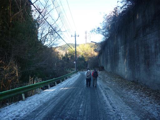 最初は車道を歩いていく。我々は2歳の子連れで足が遅いため、