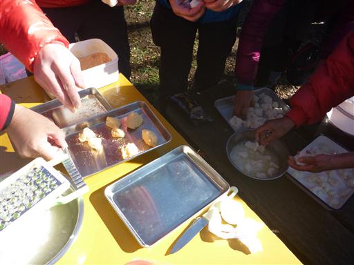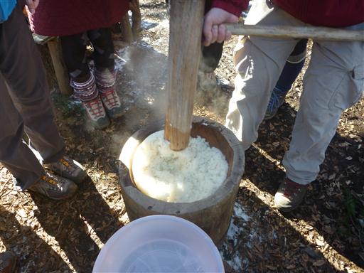 今回もかげ信小屋を利用。早速餅つきを開始する。