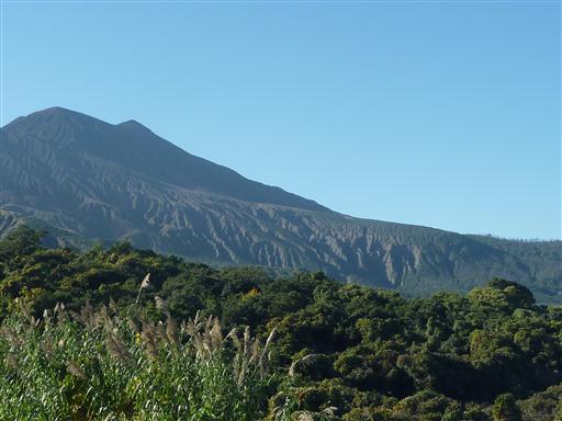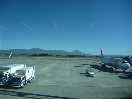 今日は快晴。空港からは霧島山が見えている。