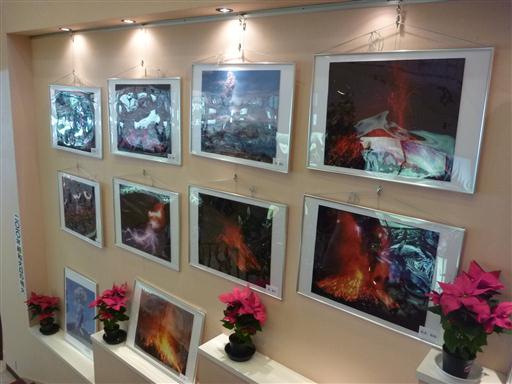 店内には今年の桜島が噴火したときの写真が展示されている。