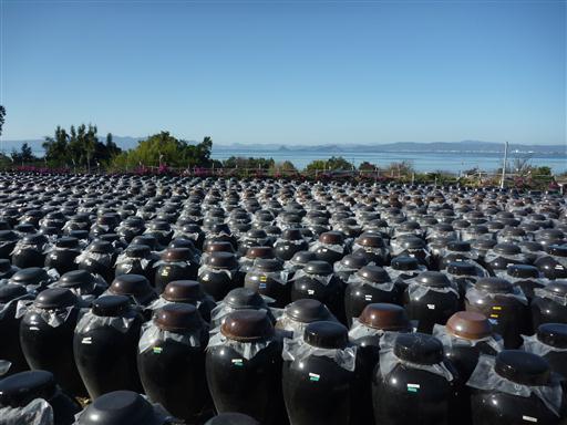 道中にあった黒酢屋に立ち寄る。黒い瓶の中で黒酢を作っているようだ。
