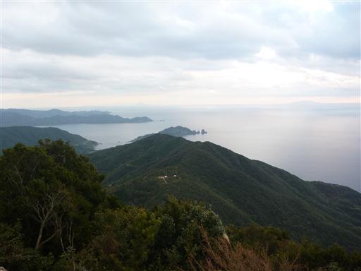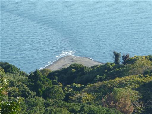 山頂から望む野間岬。付け根の部分に集落があり、
