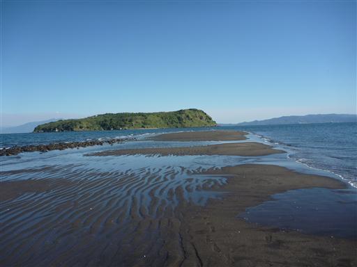 この島は無人島だが、干潮時には砂の道が現れ歩いて渡ることができる。