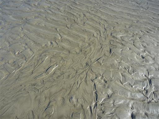 ちょうど干潮時で、水が引いた後の模様が浮き出ている。