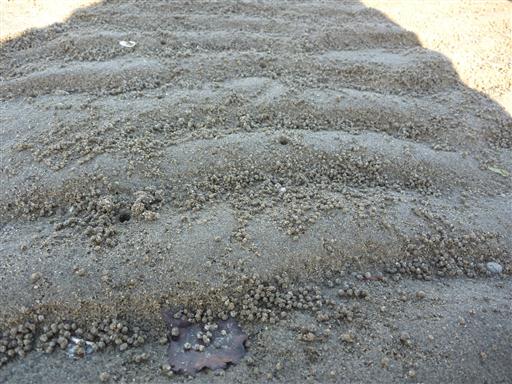 辺り一面に広がっている砂のお団子はカニが捨てたものだ。