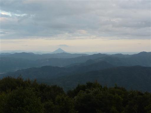 開聞岳は前方の山に邪魔されて頭だけが見えている。