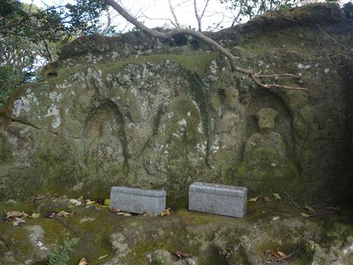 岩には3体の仏像が刻まれている。