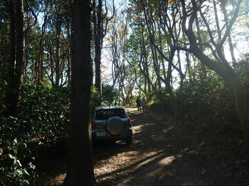 登山道になぜか車が駐車している。この登山道を車で走ったのだろうか?
