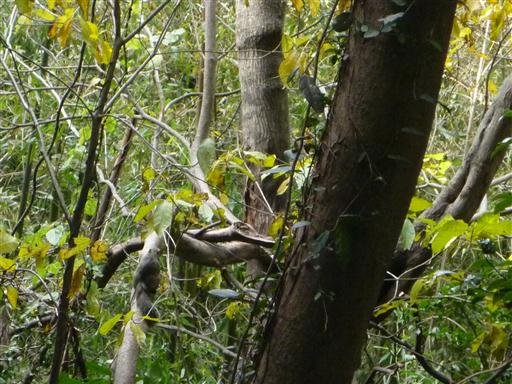 木の枝にリスを発見。何匹かのリスが幹や枝の上を行ったり来たりしている。