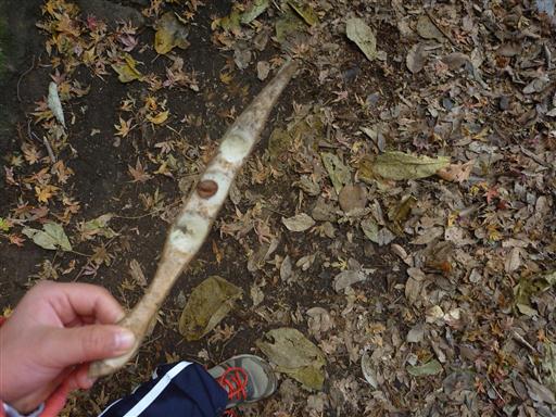 豆のさやのようなものを見つける。かなり堅いが何の植物だろうか?