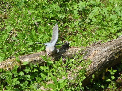 ハトが羽根を広げている。虫干しだろうか?