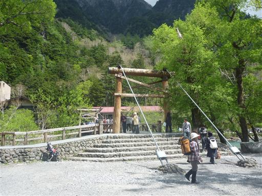 お昼近くになったので、徳沢で引き返し穂高神社奥宮に寄っていく。