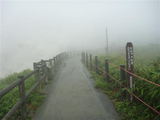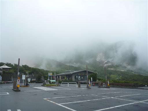 再び大涌谷を通過する。登りの時より若干視界が良くなっているが谷の全貌を望むことはできない。