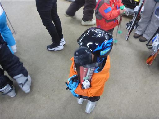 今回から安全のためヘルメットも購入した。スキーセットをレンタルし準備万端。