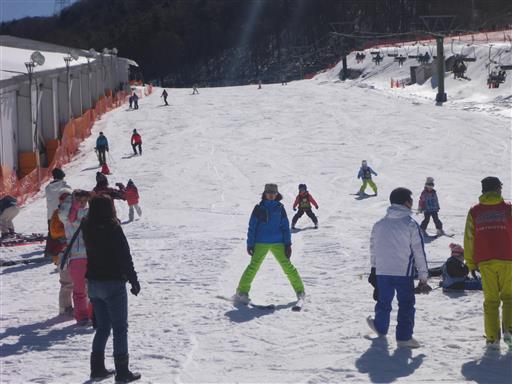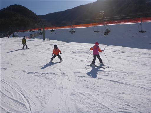 その後、初心者コースから通常コースに移動したが、何とか滑れていた。