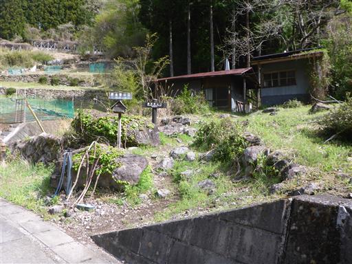 中腹に畑が広がる。植えられた植物は見当たらないが、きれいに整備されている。