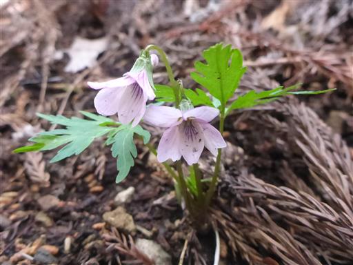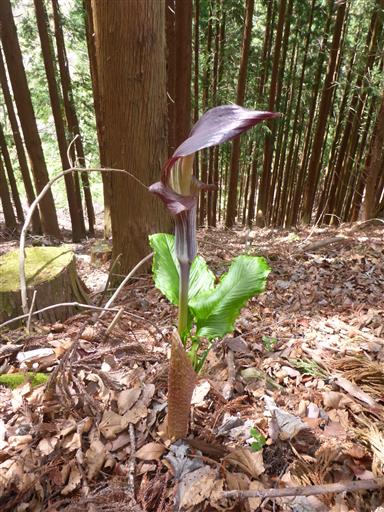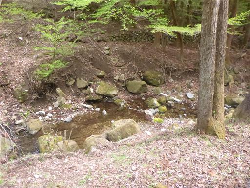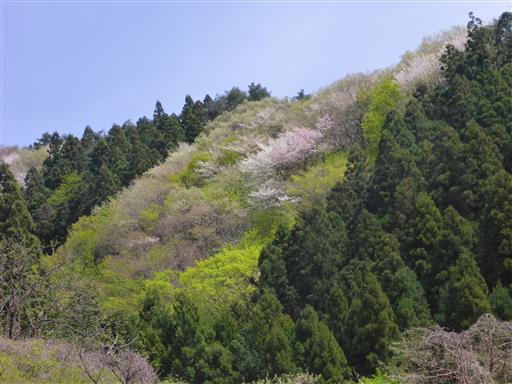 畑の裏の斜面の一角にある新緑と花々が非常に美しい。