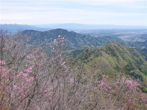 山頂からの展望は素晴らしい。周囲はアカヤシオの花に包まれている。